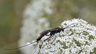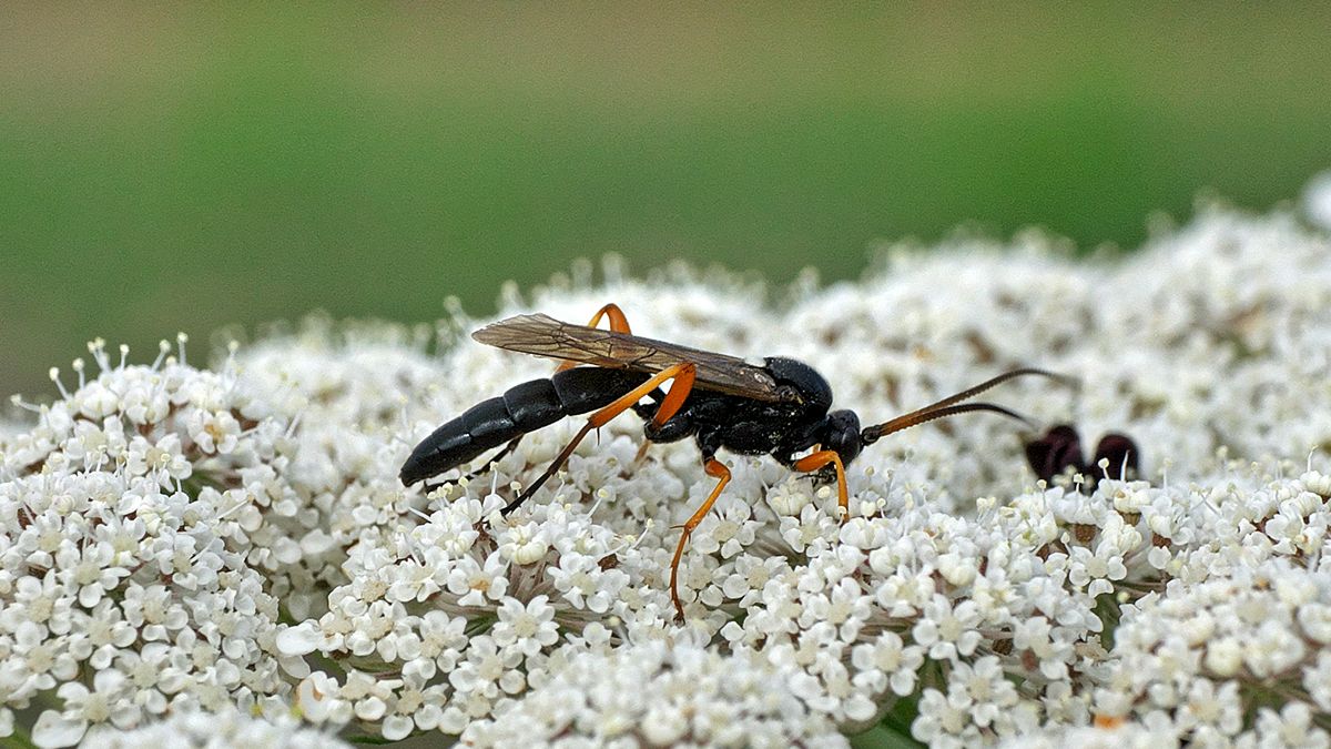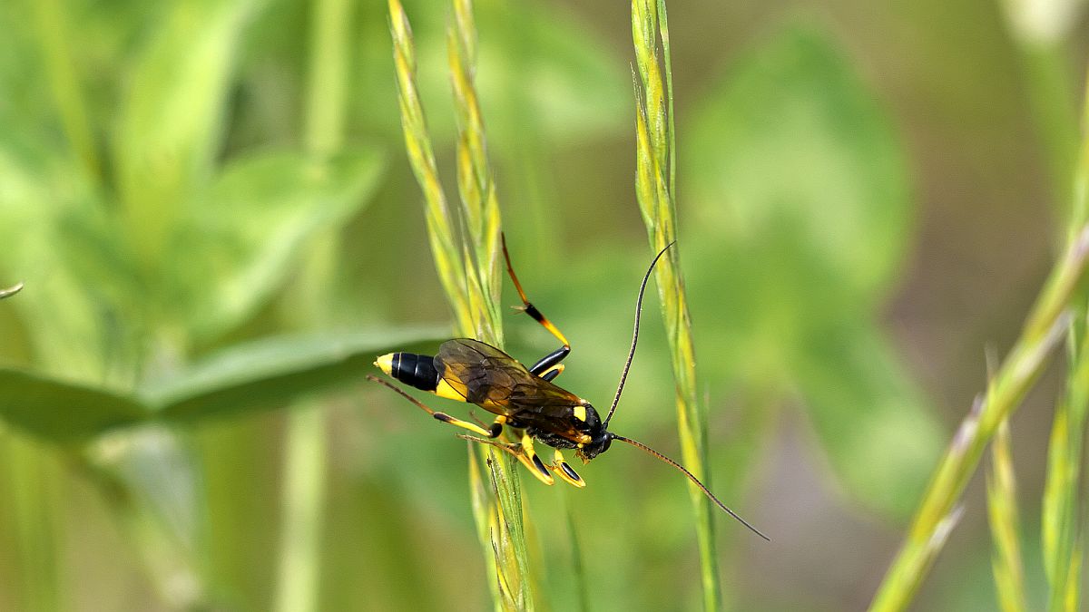 Schlupfwespen sind schlank, haben lange, dünne Fühler und die Weibchen meist einen Legebohrer.